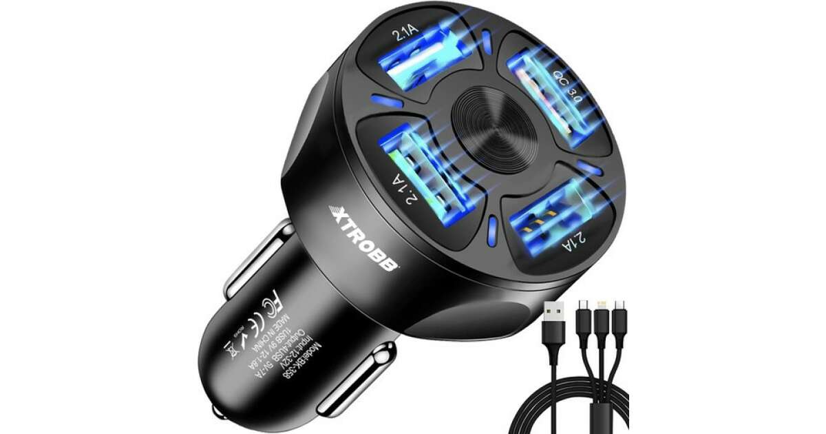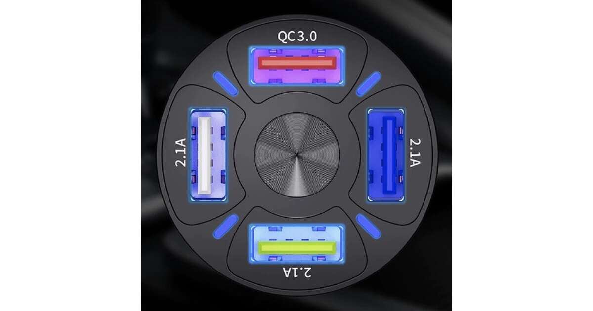 4-портово USB зарядно за кола: Зареждайте няколко устройства едновременно! 🚗💨