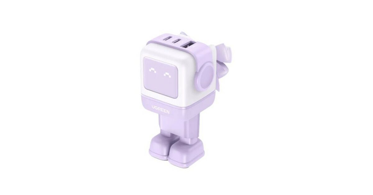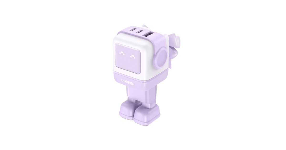 Стенно зарядно устройство Ugreen Nexode RG (Robot GaN), 2x USB + USB-C, 65 W (лилаво)