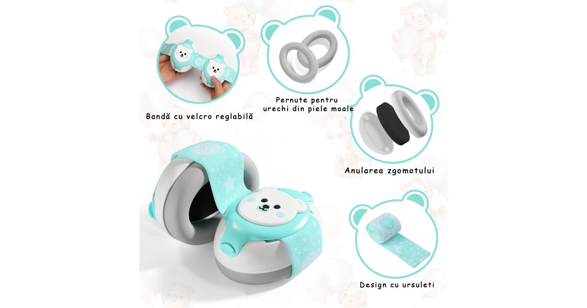 Casti antifonice pentru copii si bebelusi 3-36 luni WePro Store, protectie auditiva in medii zgomotoase, sistem de prindere sigur pentru fontanela, bentita elastica, usor de folosit