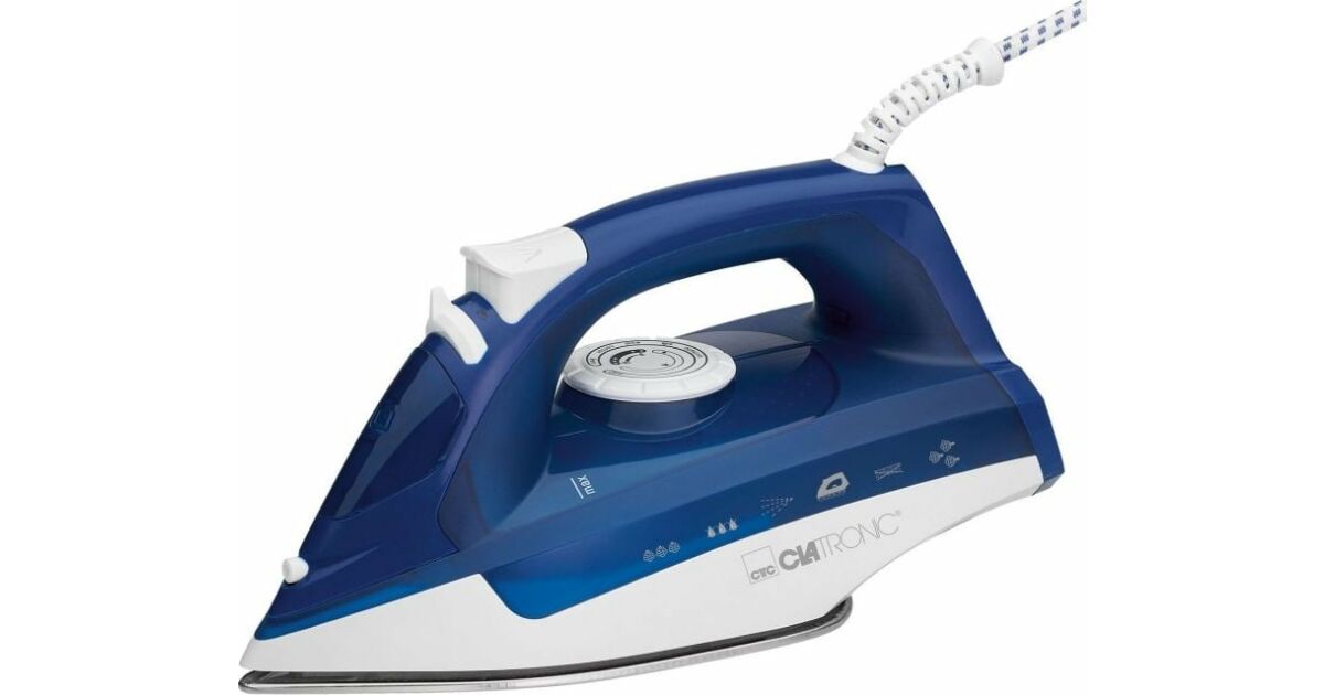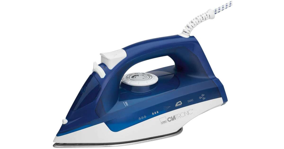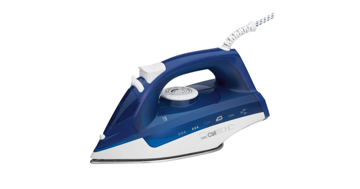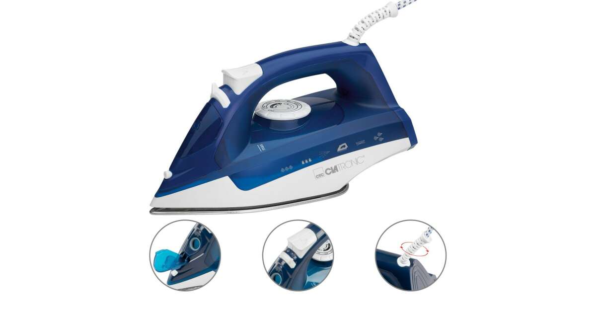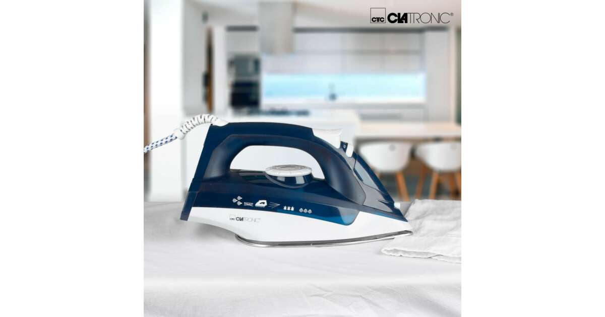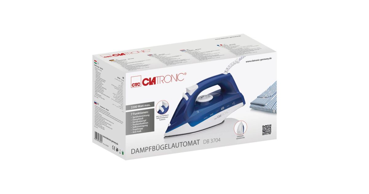 Ютия Clatronic DB 3704, 2200W, 7 функции, 250 ml, отстраняване на котлен камък, вертикална пара, бяла/синя описание на...