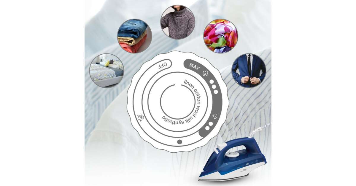 Ютия Clatronic DB 3704, 2200W, 7 функции, 250 ml, отстраняване на котлен камък, вертикална пара, бяла/синя покупка: