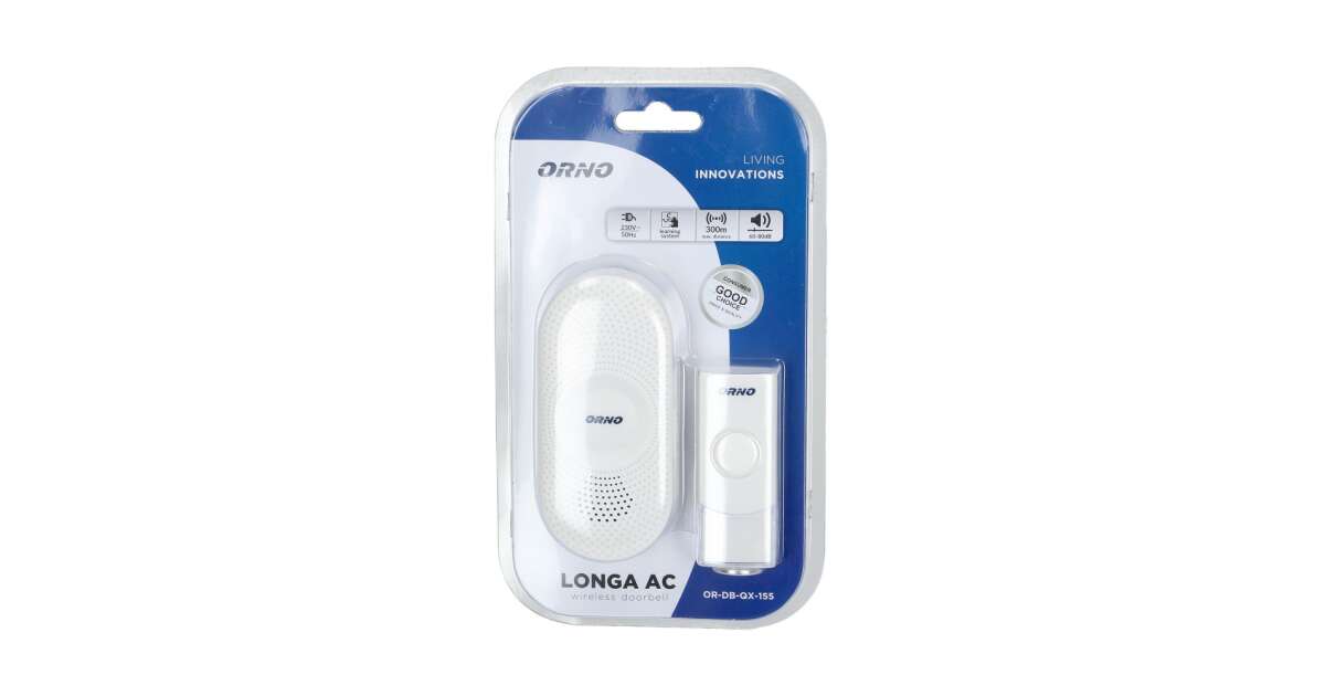Безжичен звънец LONGA AC ORNO OR-DB-QX-155, 230V, 300 м, 60-80 db, 36 тона, IP44, бял описание на...
