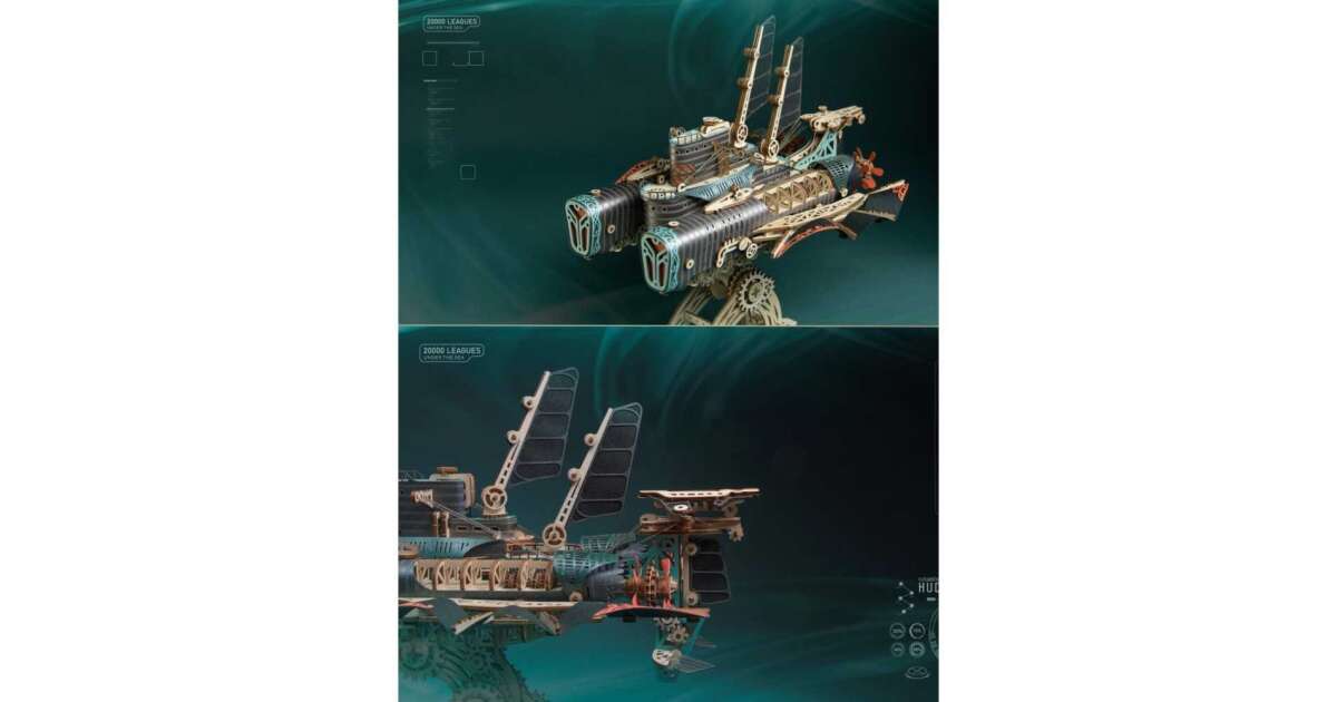 3D-Puzzles für Erwachsene, 20.000 Meilen Unterwasser-Fantasie-Raumschiff, Modellbausätze für Stammprojekte für Erwachsene, über 12 Jahre, Grey, Howcat, Holz, 396 Teile