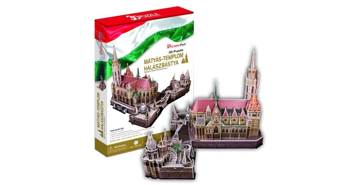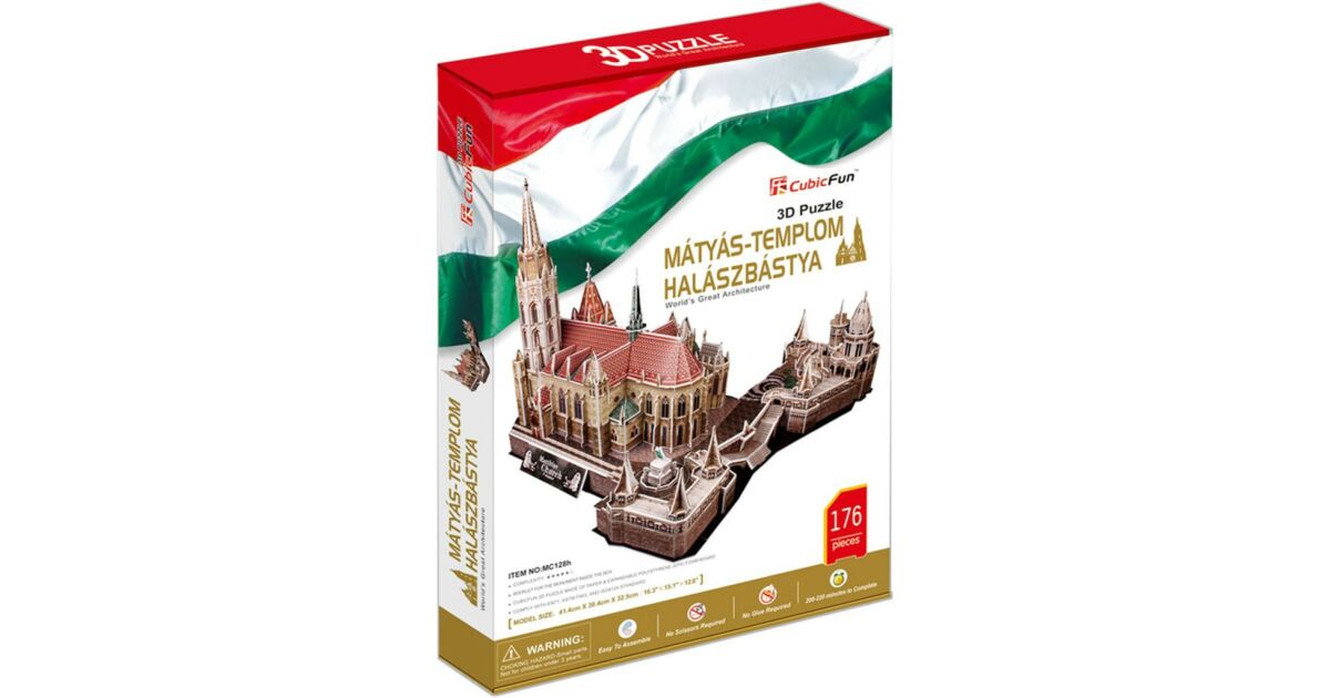 Dieses CubicFun 3D Puzzle ist eine großartige Möglichkeit, die wunderschöne Mátyás-templom (Matthiaskirche) und die beeindruckende Halászbástya (Fischerbastei) in Budapest zu entdecken. Es ist ein detailliertes Modell mit 176 Teilen, das ab 8 Jahren empfohlen wird. Die Größe des fertigen Modells beträgt: 44,1 x 38,4 x 32,5 cm. Kunden lobten das ausgezeichnete Preis-Leistungs-Verhältnis und die schöne Verarbeitung.