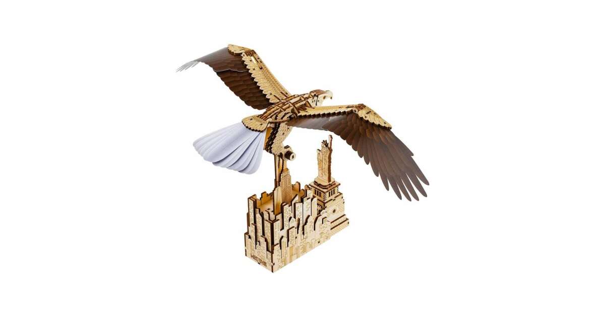 Wood Trick Liberty Eagle 3D Wooden Puzzles for Adults and Kids to Build - Mechanical Wings Movement - Engineering DIY Project Bird 3D Puzzles for Adults Model Kits