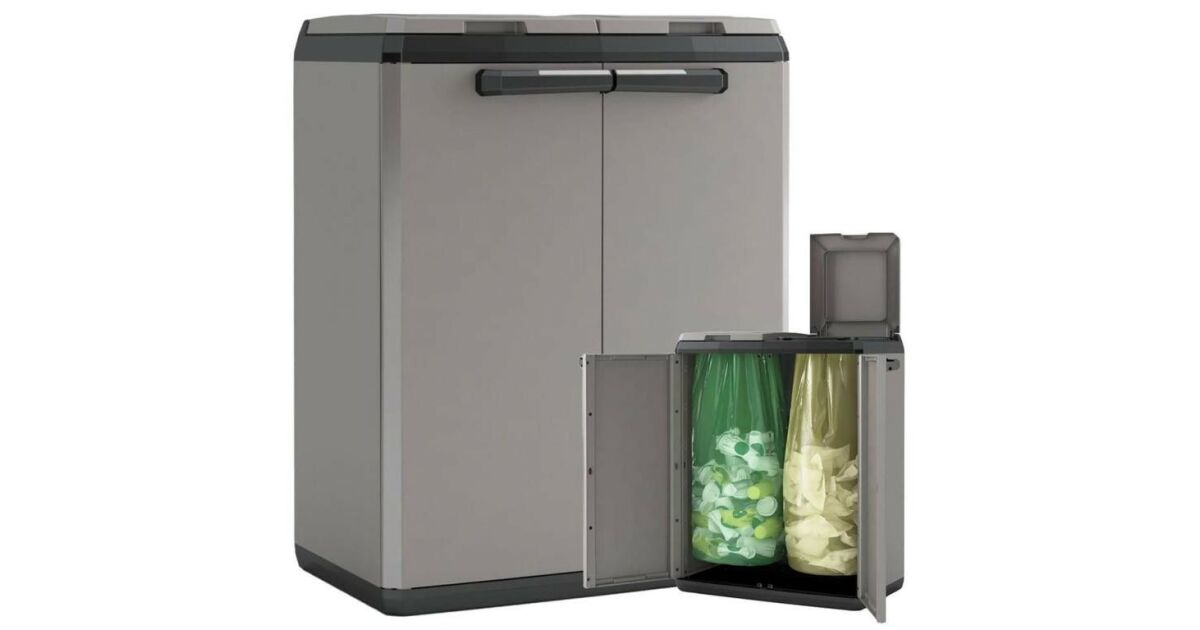 KETER SPLIT CABINET BASIC Kunststoff-Mülltrennsystem - grau - 2 x 110 L Beschreibung