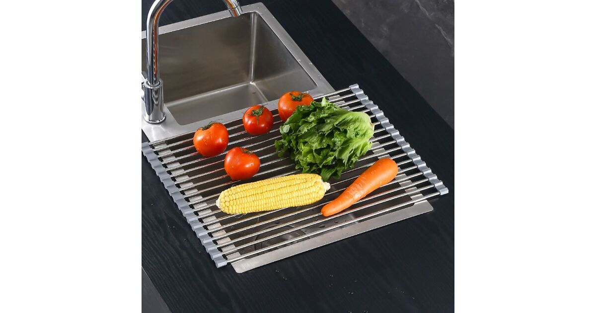 Halte deine Küche sauber und trocken mit dieser multifunktionalen Edelstahl-Abtropfmatte! Ideal zum Abtropfen von Geschirr, Gemüse und Obst, bietet eine rutschfeste und leicht zu reinigende Oberfläche.