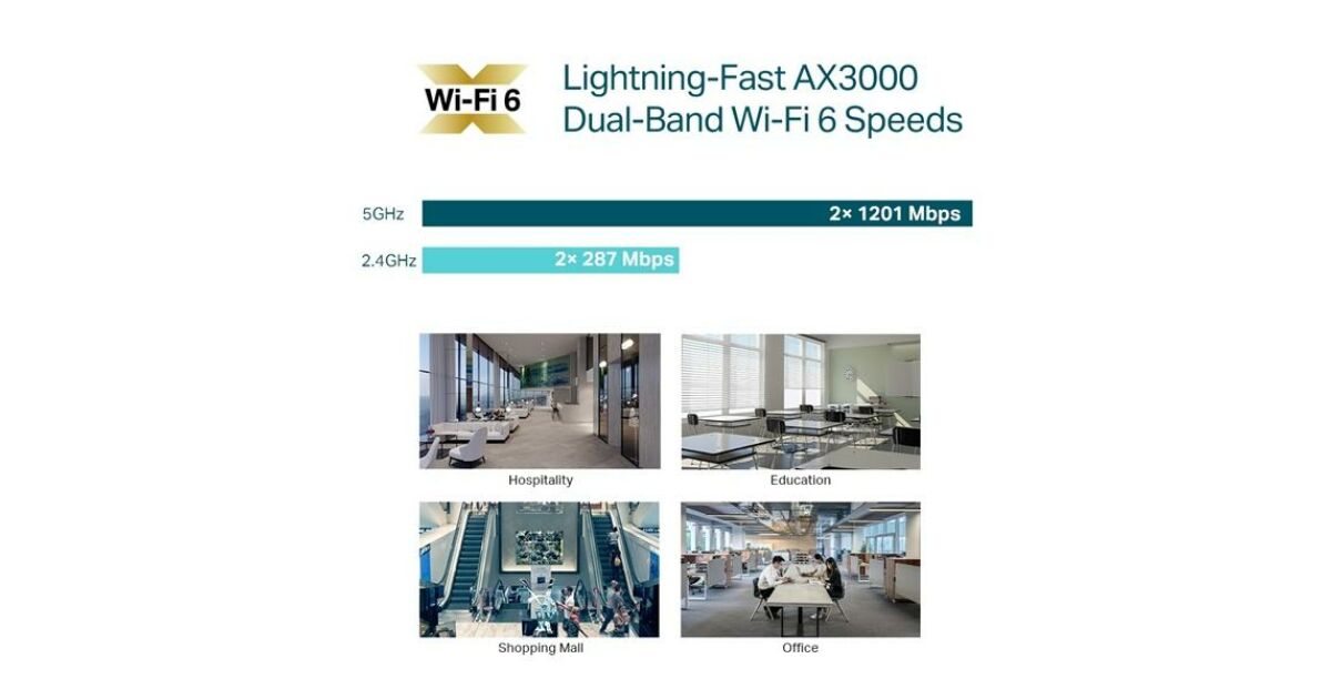 - AX3000 Dual Band: Bis zu 2402 Mbit/s im 5-GHz-Band und 574 Mbit/s im 2,4-GHz-Band. 💨