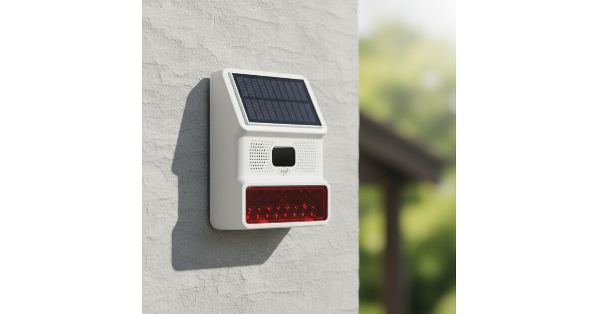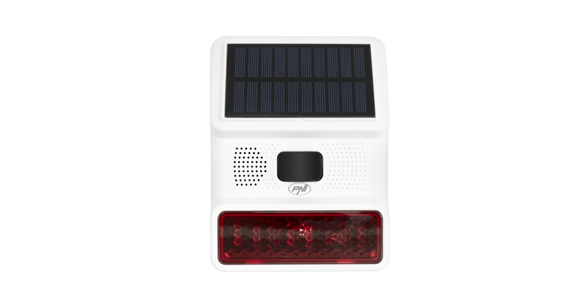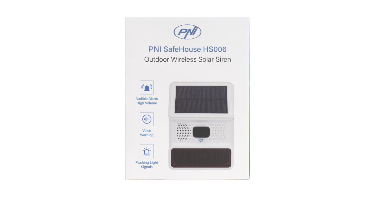 Die PNI SafeHouse HS006 ist eine vielseitige Außensirene, die sowohl akustische als auch optische Alarmsignale abgibt und zusätzlich über Solar- und USB-Stromversorgung verfügt.