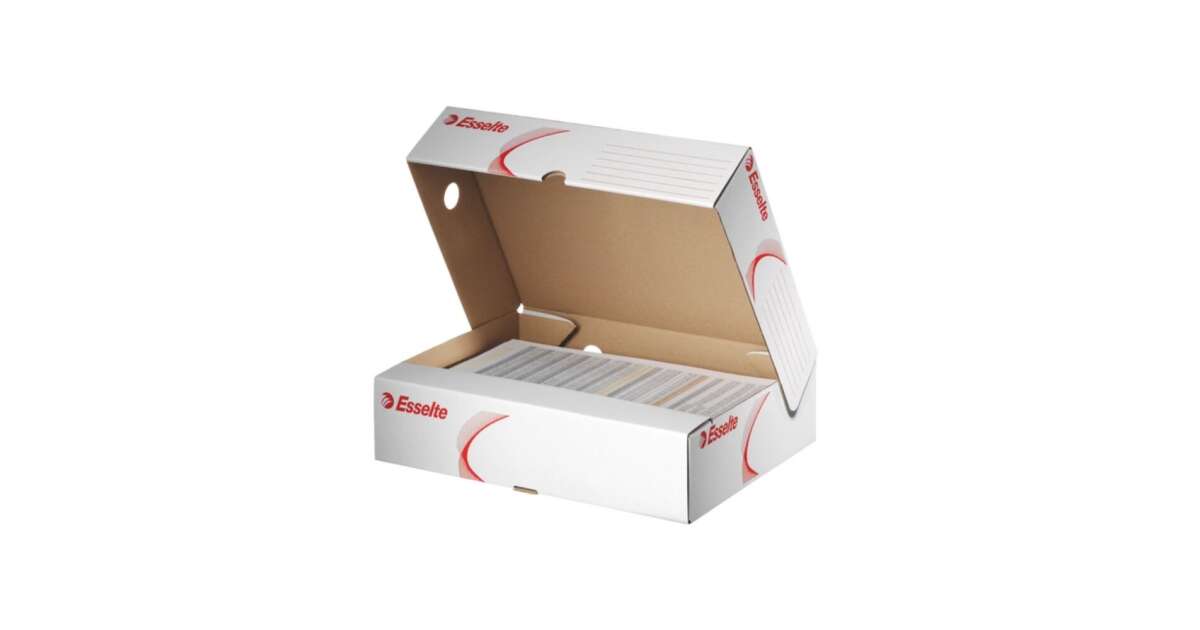 Die Esselte Standard Archivbox ist die ideale Lösung für die sichere und ordentliche Aufbewahrung Ihrer wichtigen Dokumente. Seit über 25 Jahren bietet sie Anwendern zuverlässige Qualität und ein praktisches Design.