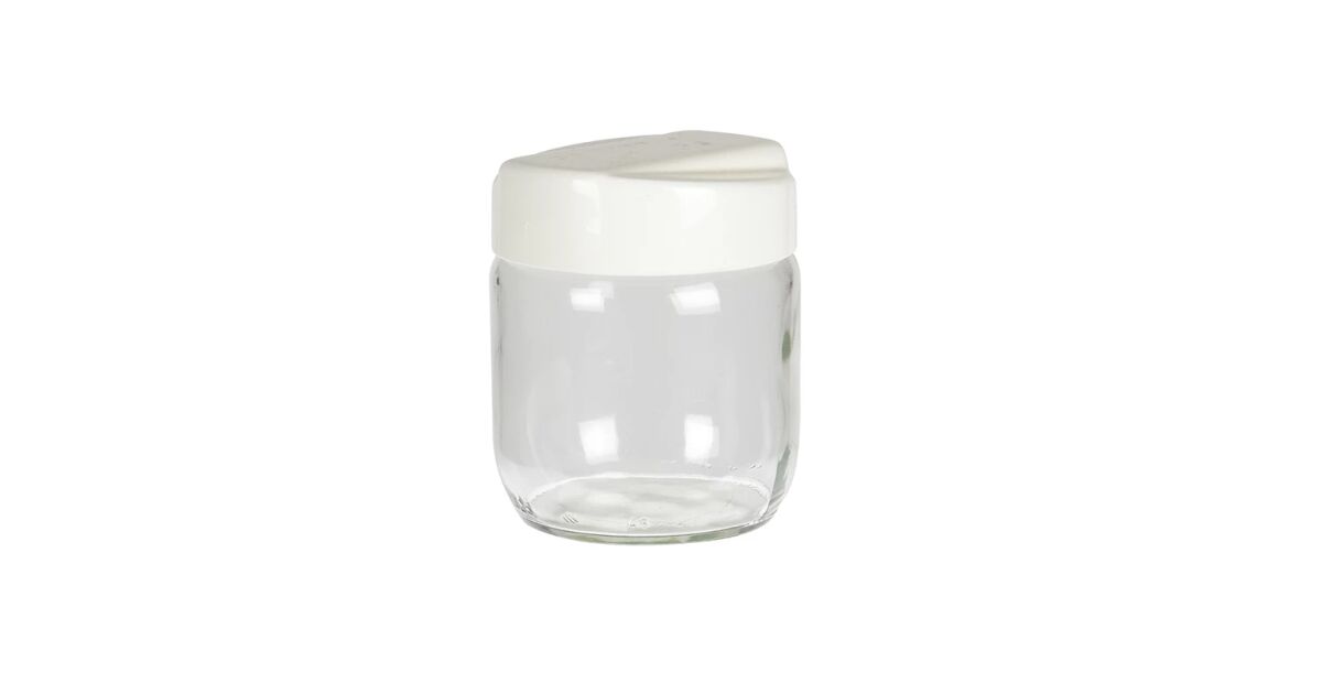 - 1 transparenter Glasbehälter mit weißem Deckel