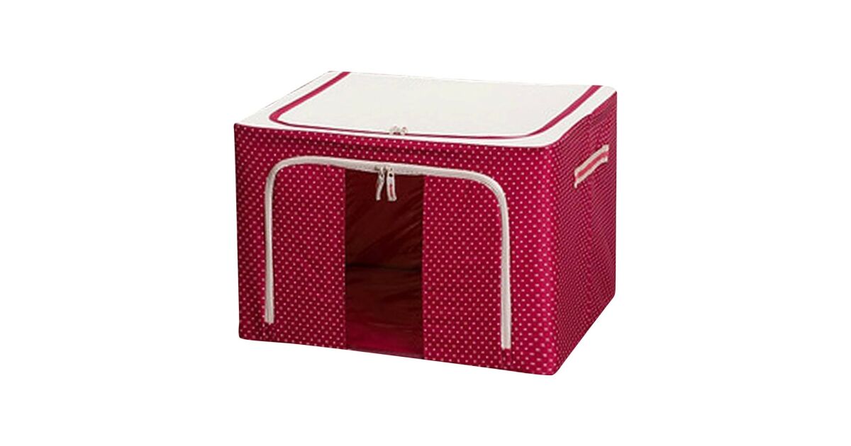 Faltbare Aufbewahrungsbox, Flippy, 66 L, Oxford-Gewebe, 50 x 40 x 33 cm, Frontfenster, 2 Zugangstüren mit beidseitigem Reißverschluss, Metallrahmen, stabile Bodenstütze aus Kunststoff, Punkte