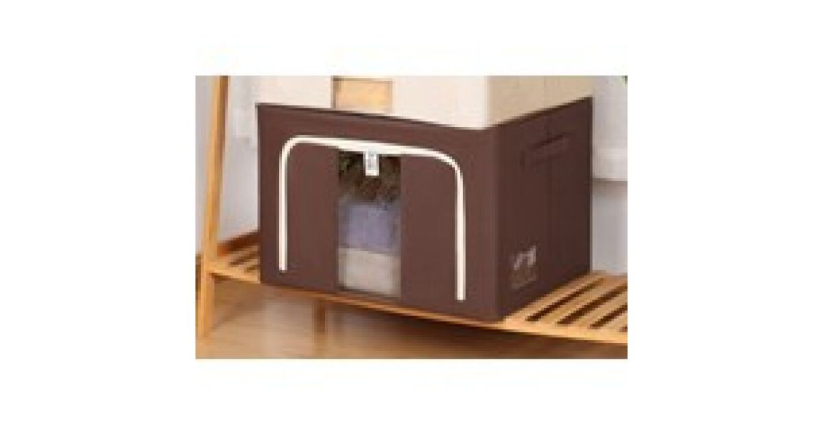 -Faltbare Aufbewahrungsbox, Flippy, mit Fenster und Doppelreißverschluss, 66 L, Premium-Textil, 50 x 40 x 33 cm, Metallrahmen, wasserdicht, Braun Beschreibung