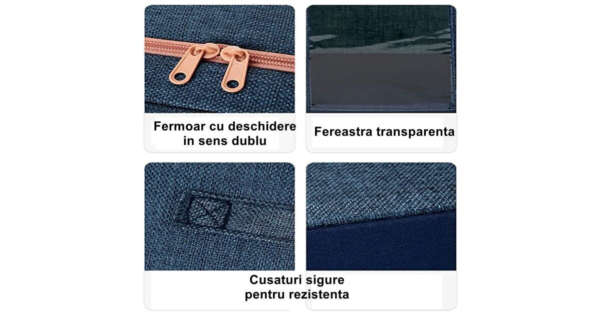 -Faltbare Aufbewahrungsbox, Flippy, mit Reißverschluss, 100 L, Textil, 60x42x40 cm, Metallrahmen, stabiler Kunststoff-Bodenträger, Marineblau mit zwei Fenstern