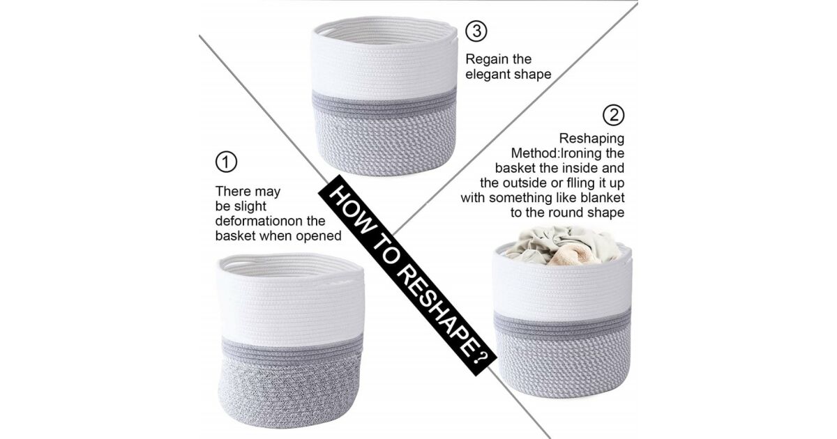 Anleitung zum Formen: Falls der Korb nach dem Öffnen leicht verformt ist, kannst du ihn durch leichtes Bügeln von außen oder durch Füllen mit einer Decke wieder in seine runde Form bringen.