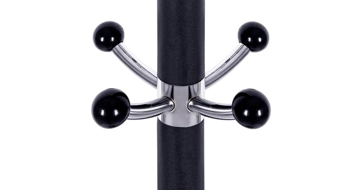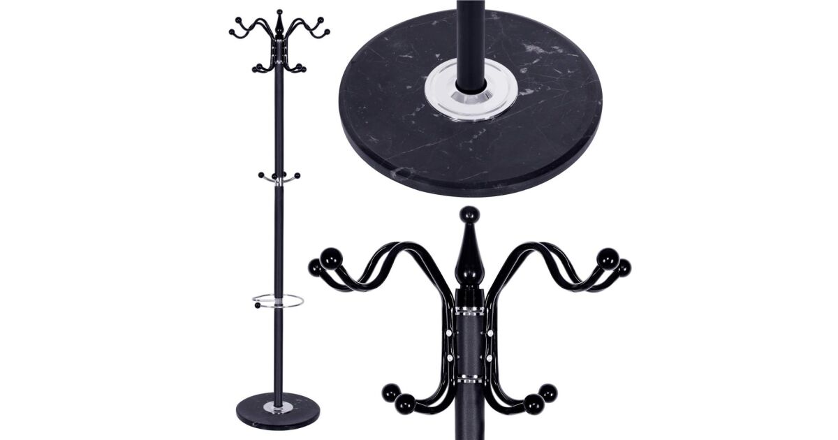 Diese stilvolle und praktische Garderobe ist die perfekte Wahl für Flur, Büro oder jeden anderen Raum. Die 174 cm hohe Garderobe ist aus elegantem, mattschwarzem Metall und einem schwarzen Marmor-Fuß gefertigt, der hervorragende Stabilität bietet. Die abgerundeten Haken verhindern das Abrutschen oder Beschädigen der Kleidung. Der integrierte Schirmständer ist eine praktische Ergänzung.