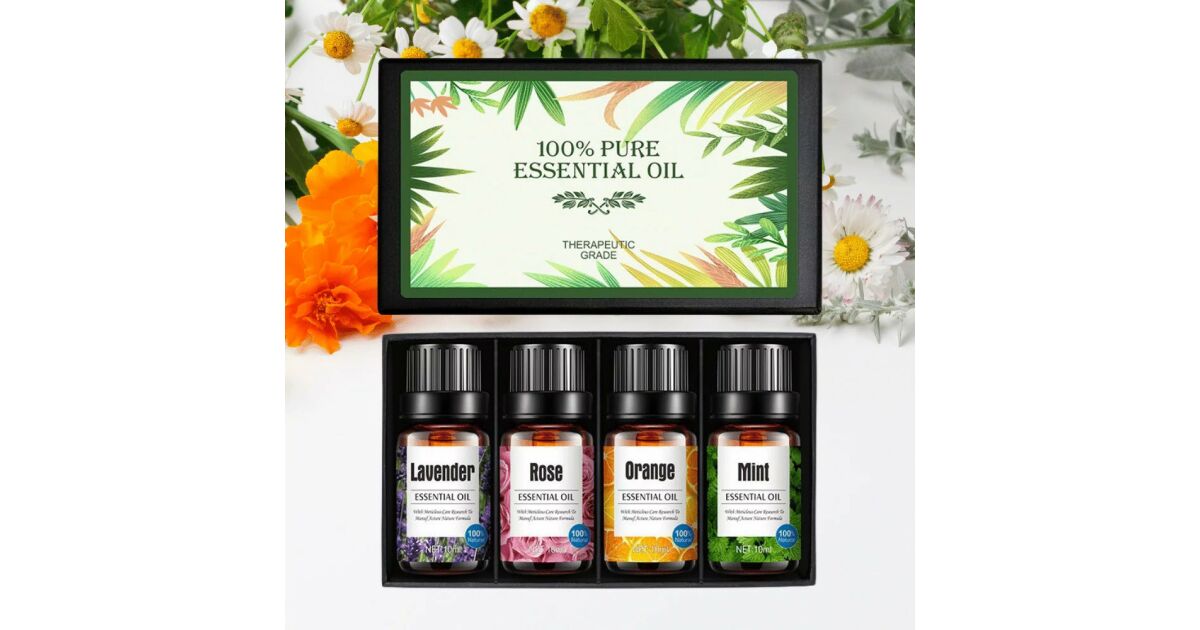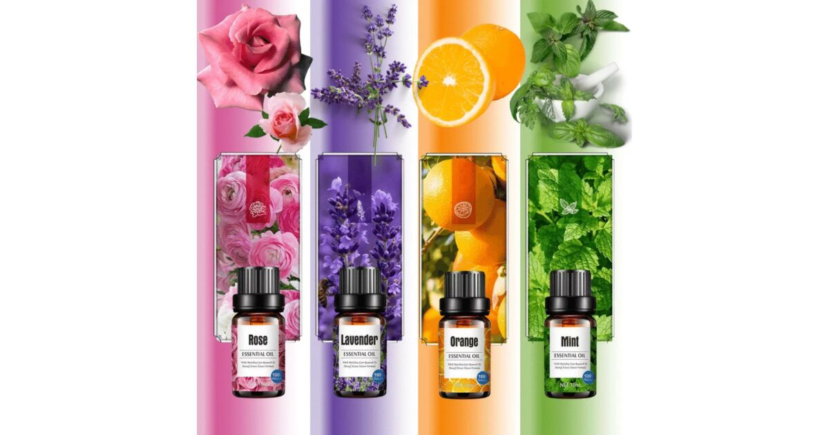 - Pulaiyi 4-teiliges Set ätherischer Öle (Lavendel, Rose, Orange, Minze)