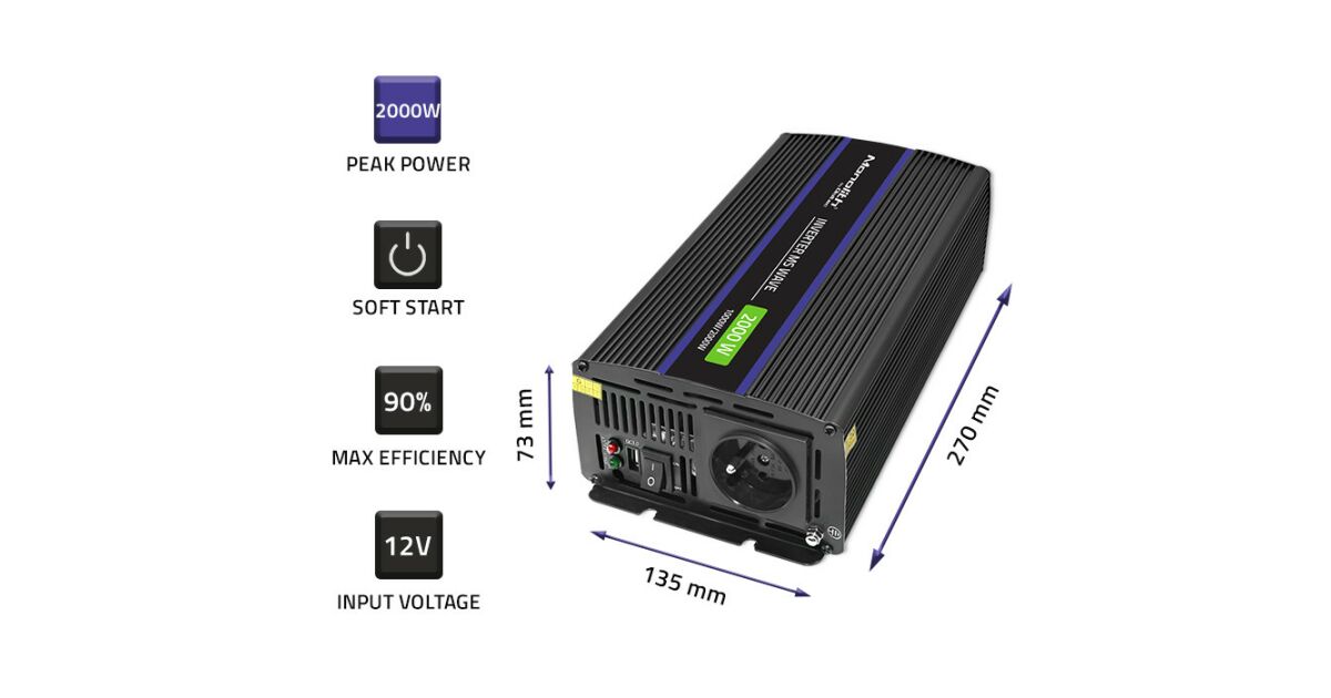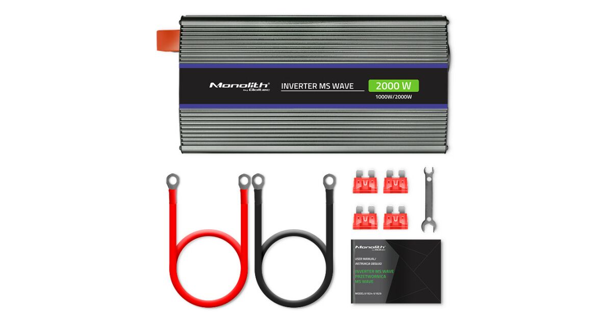 Qoltec Spannungsinverter Monolith 2000 MS Wave | 12 V bis 230 V | 1000/2000 W | USB