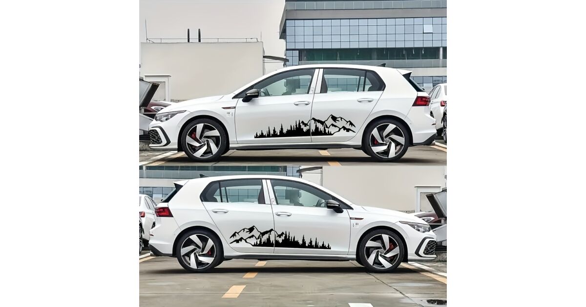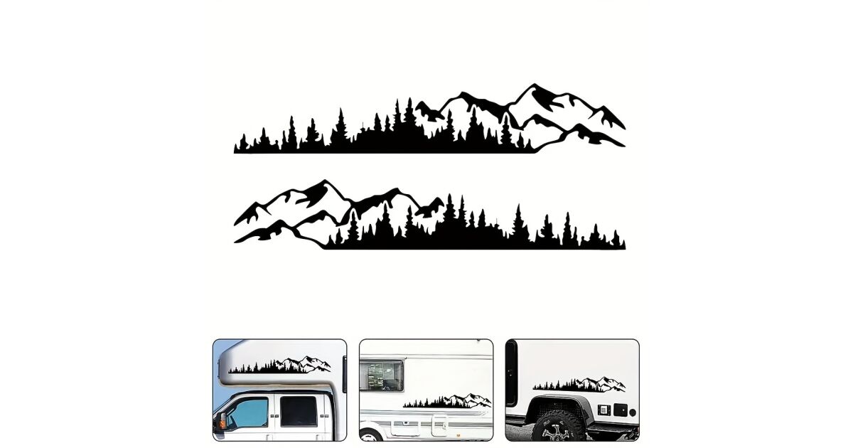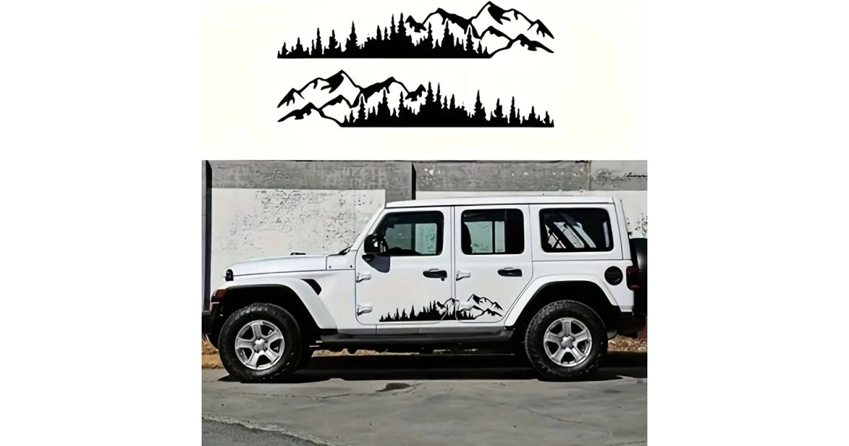 Dieses 2-teilige selbstklebende Aufkleber-Set ist die perfekte Wahl, wenn du deinem Geländewagen, SUV oder einem anderen Fahrzeug ein einzigartiges Aussehen verleihen möchtest. Mit dem "Wald und Berge"-Design hebst du dich garantiert von der Masse ab!