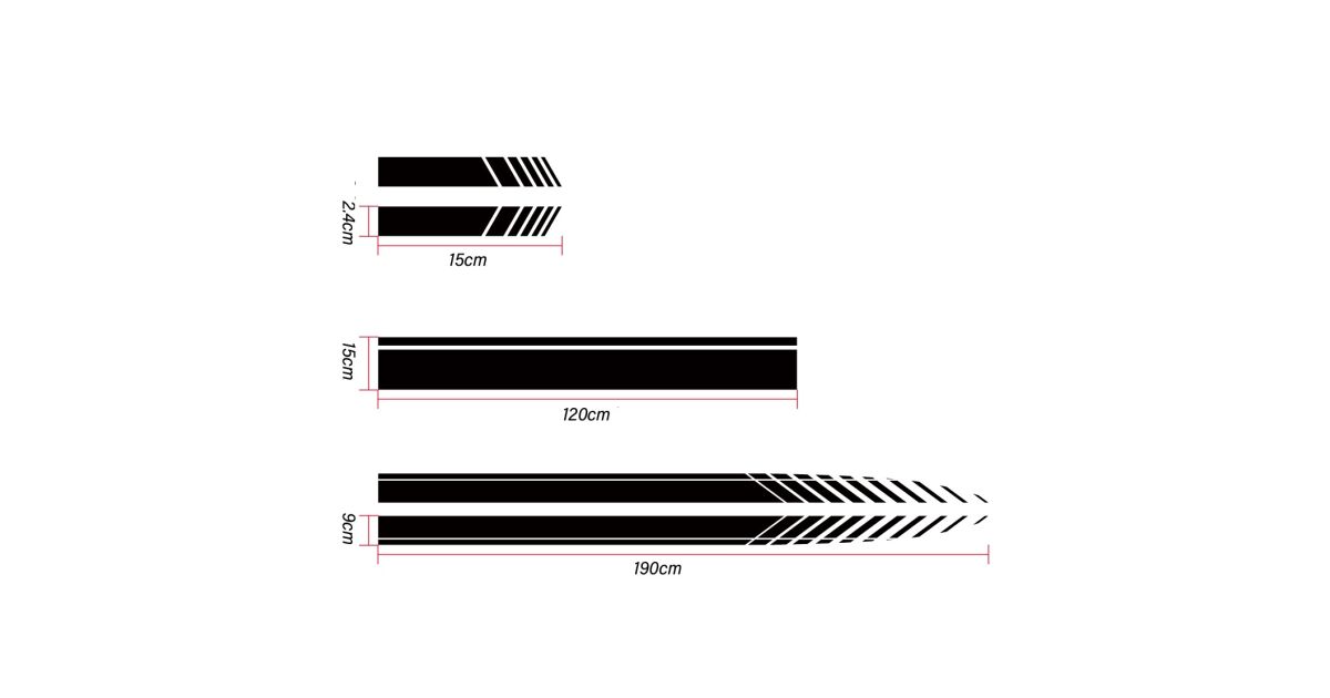 5er Set selbstklebende Tuning-Aufkleber, Modell "Racing Stripes V1", Größe 190 cm, Farbe Schwarz Beschreibung