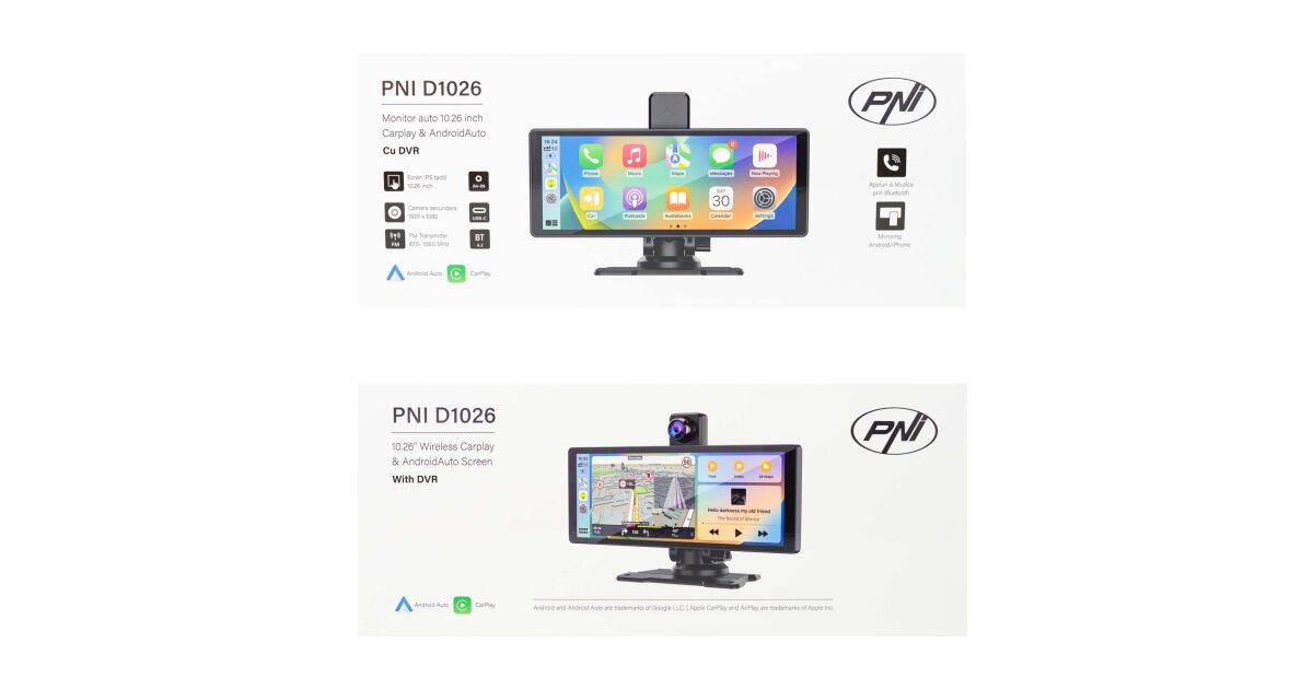 Auto-Monitor mit DVR PNI D1026 10,26 Zoll, drahtloses Carplay, Navigation, Musik, Freisprecheinrichtung, Bluetooth, FM-Transmitter Beschreibung