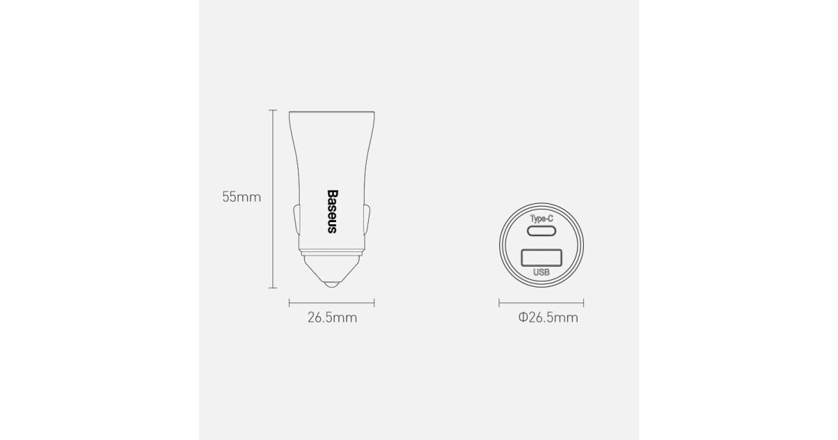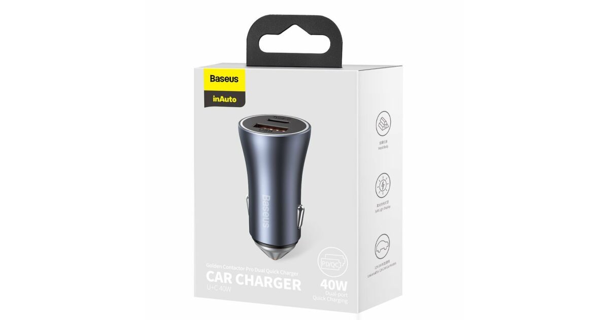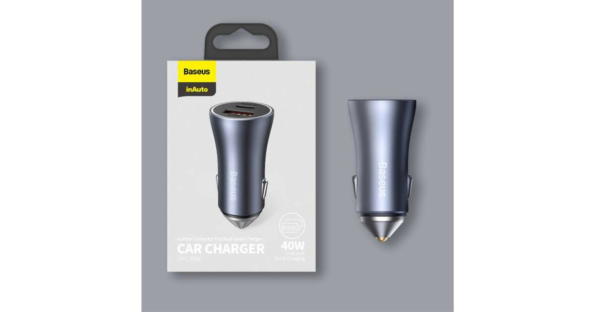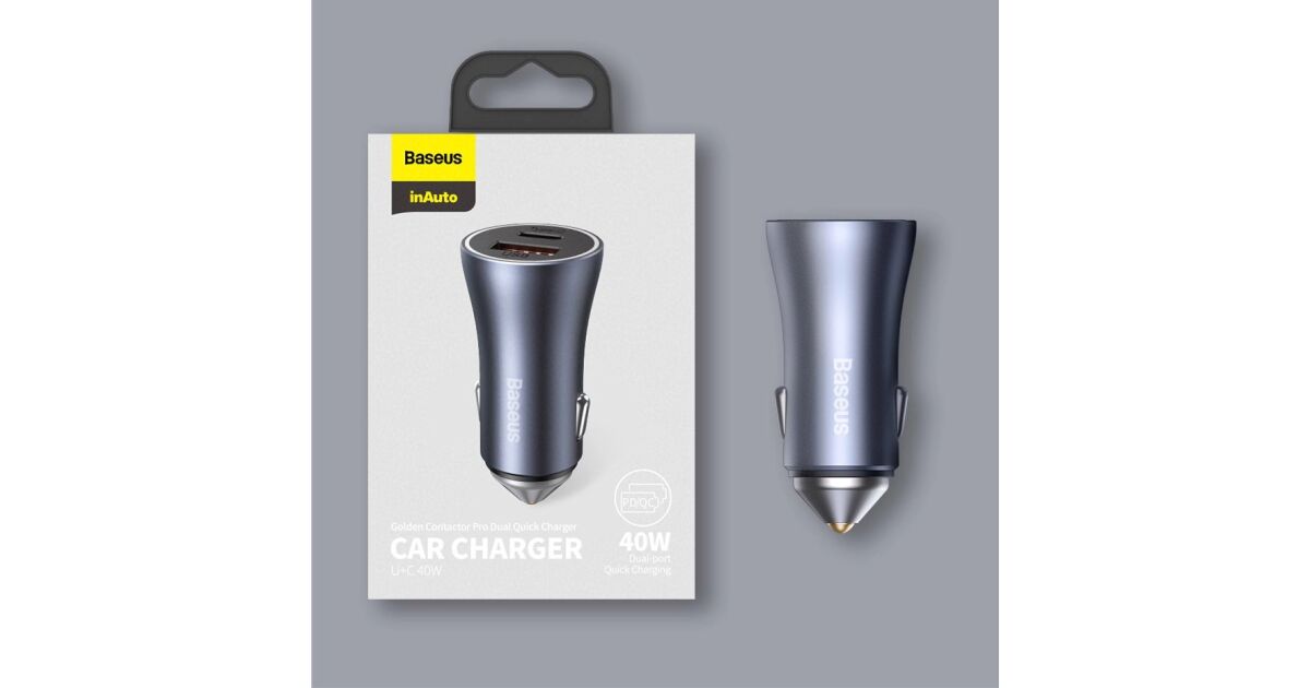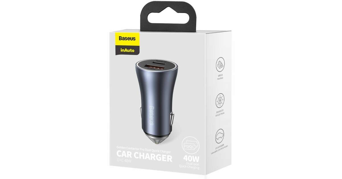 Baseus Golden Contactor Pro Autoladegerät, USB + USB-C, QC4.0 +, PD, SCP, 40 W – Grau Beschreibung
