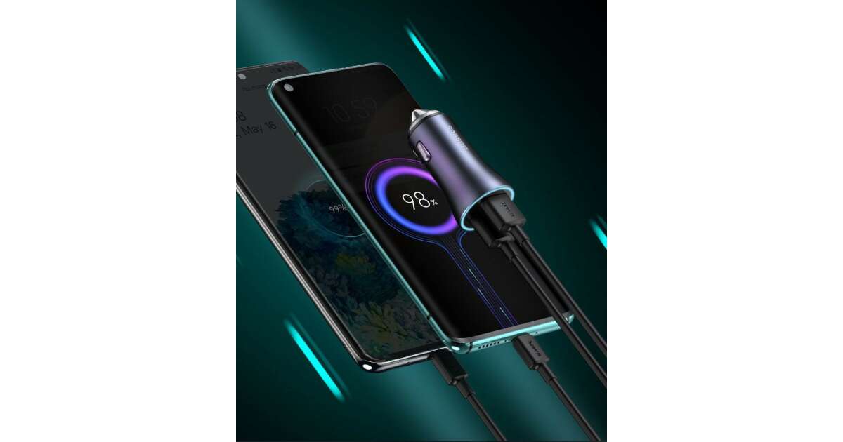 Zwei Geräte gleichzeitig im Auto schnell laden? Mit dem Baseus Golden Contactor Pro Autoladegerät ist das kinderleicht! Dank seiner USB- und USB-C-Anschlüsse kannst du zwei Geräte gleichzeitig laden und die integrierte BPS II Schnellladetechnologie unterstützt die Schnellladeprotokolle von Xiaomi und Samsung.