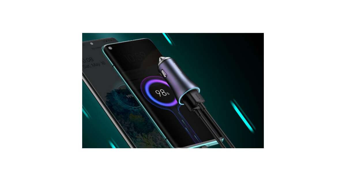 Dieses Baseus Golden Contactor Pro Autoladegerät ist die perfekte Wahl, wenn du deine beiden Geräte unterwegs schnell aufladen möchtest. Es verfügt über zwei Anschlüsse: USB-A und USB-C, sodass du dein Telefon und dein Tablet gleichzeitig aufladen kannst. Dank der integrierten BPS II Technologie unterstützt es zahlreiche Schnellladeprotokolle, einschließlich der Schnellladetechnologien von Xiaomi und Samsung.