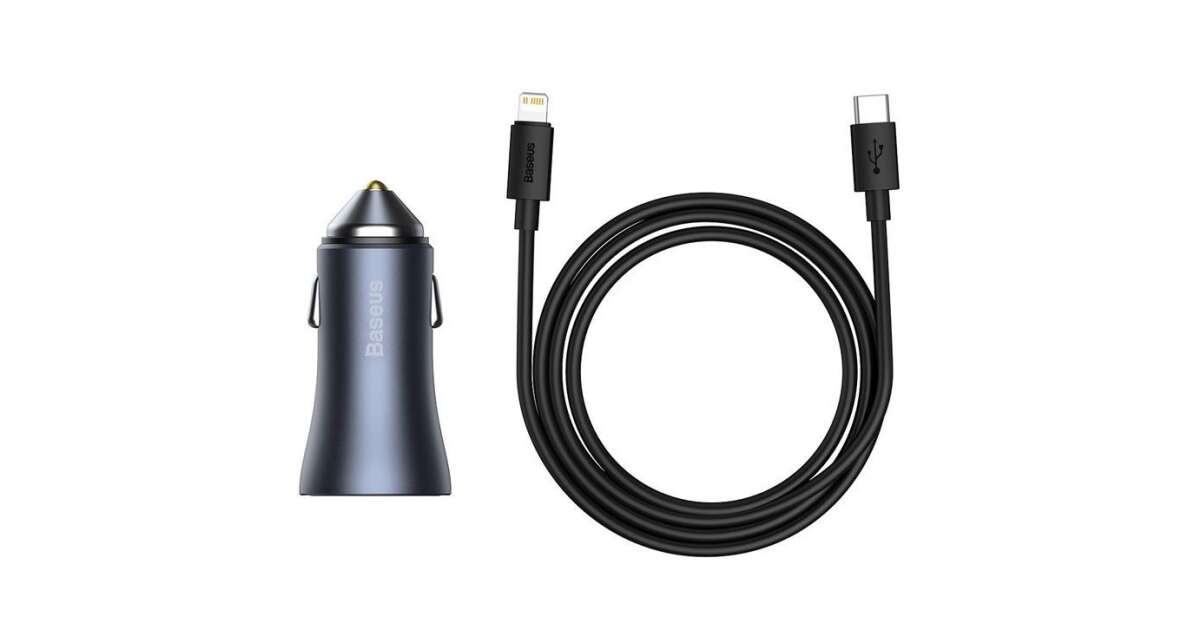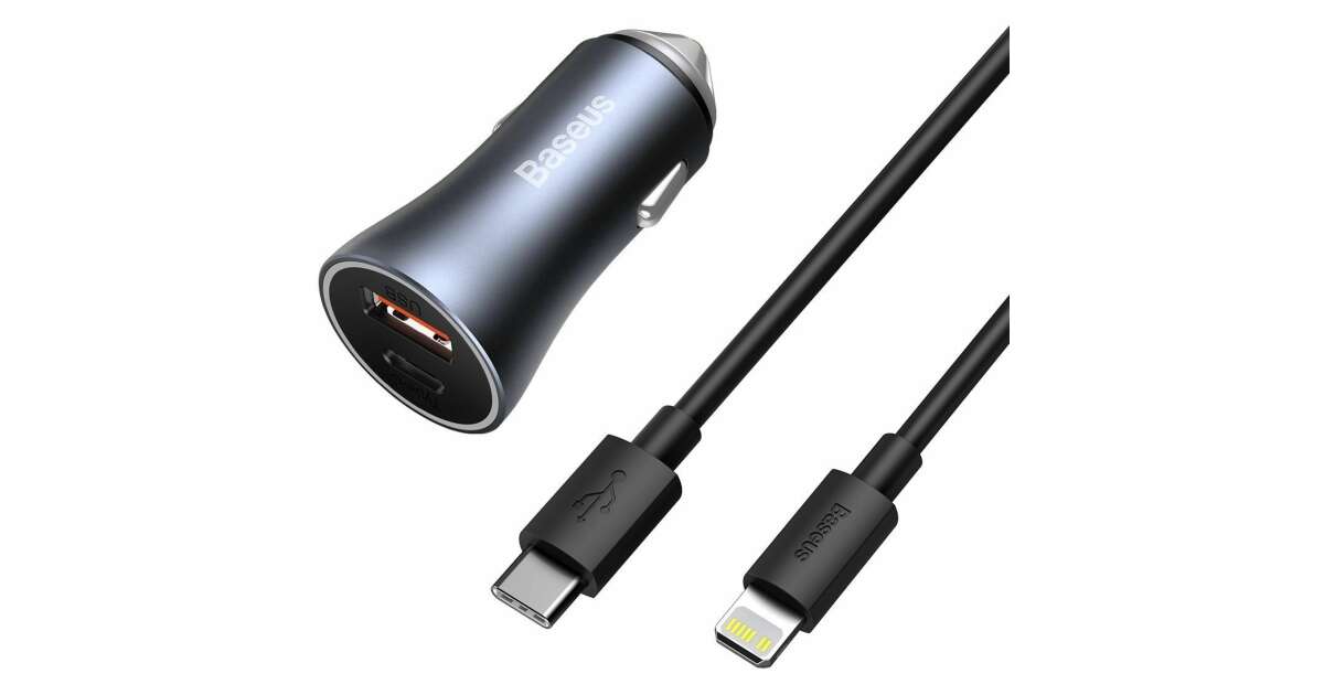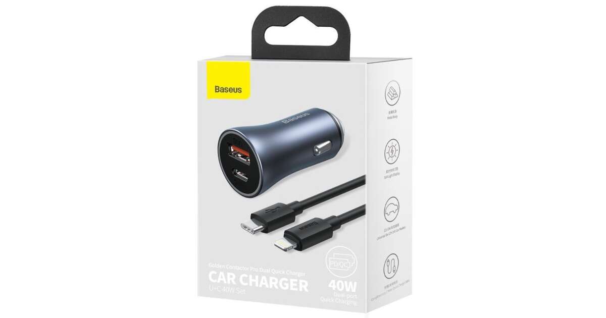 Baseus Golden Contactor Pro Autoladegerät, USB+USB-C, QC4.0+PD, SCP, 40W+USB-C auf Lightning-Kabel, 1 m Beschreibung