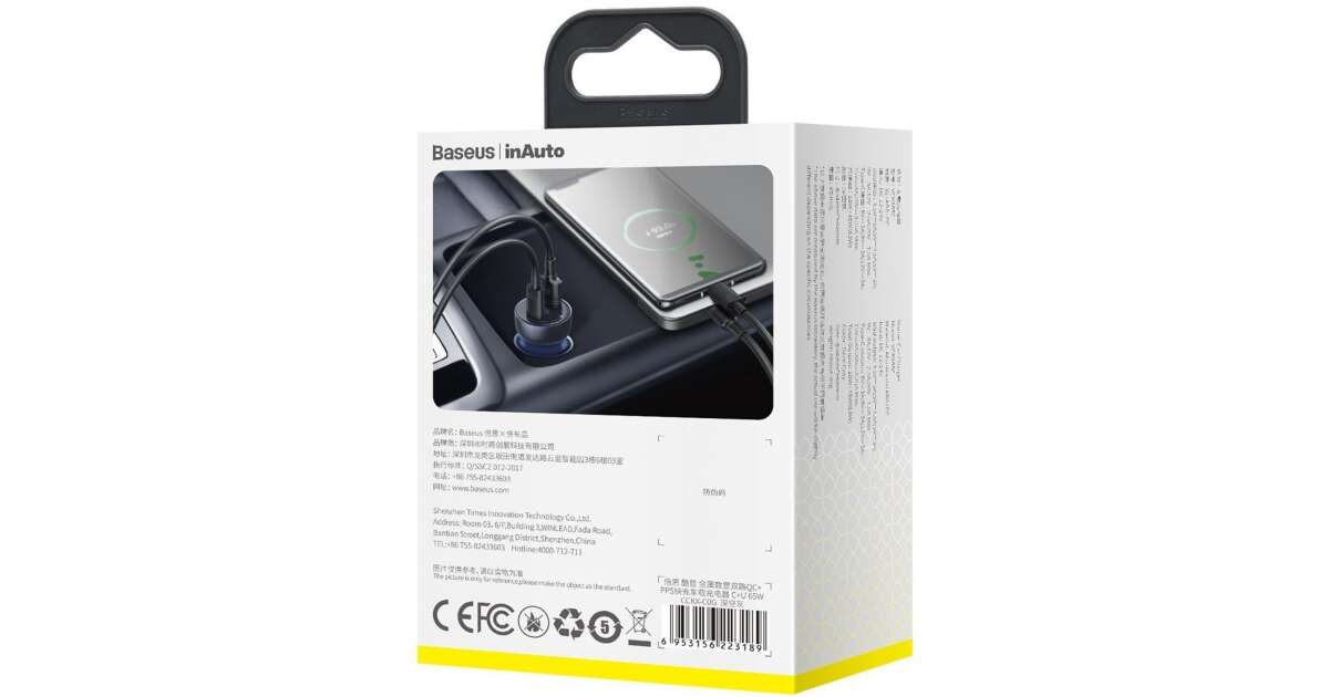 Autoladegerät Typ-C PD65W, USB QC4.0 - Baseus (CCKX-C0G) - Grau Beschreibung