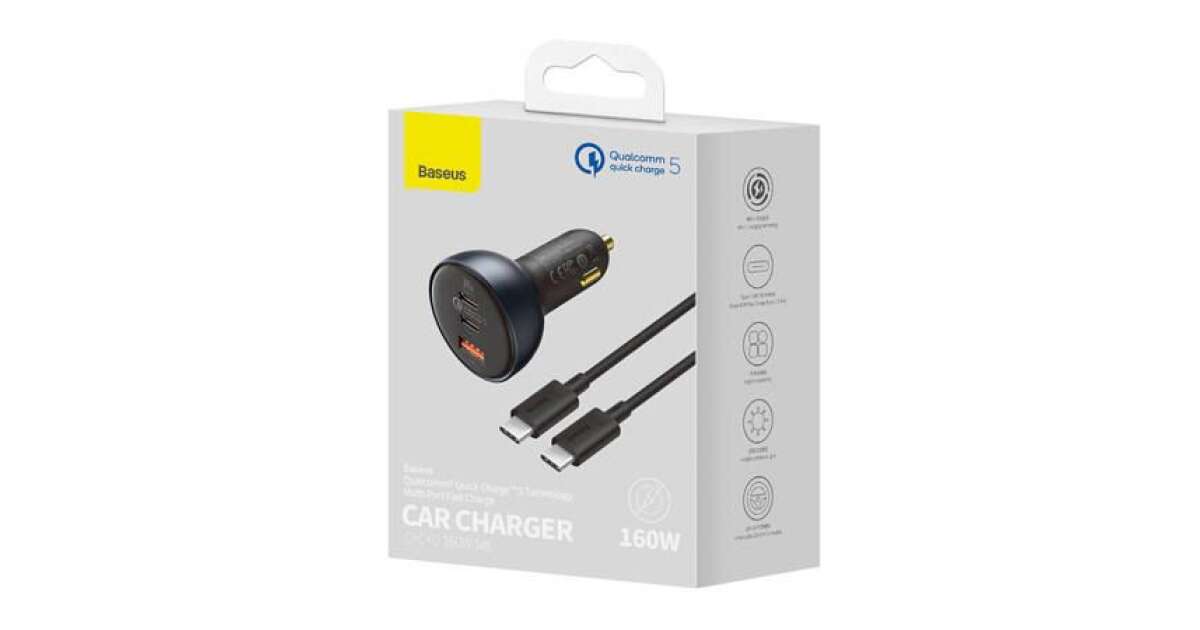 Baseus Qualcomm Autoladegerät, USB, 2x USB-C, 160W, grau Beschreibung