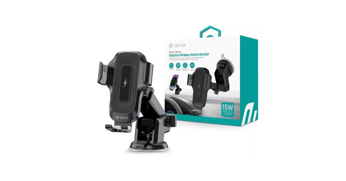 Devia Kabelloses Autoladegerät/Halterung für Armaturenbrett/Windschutzscheibe – Devia Smart Series Induktive kabellose Fahrzeughalterung – 15 W – Qi-Standard – Schwarz Kaufen: