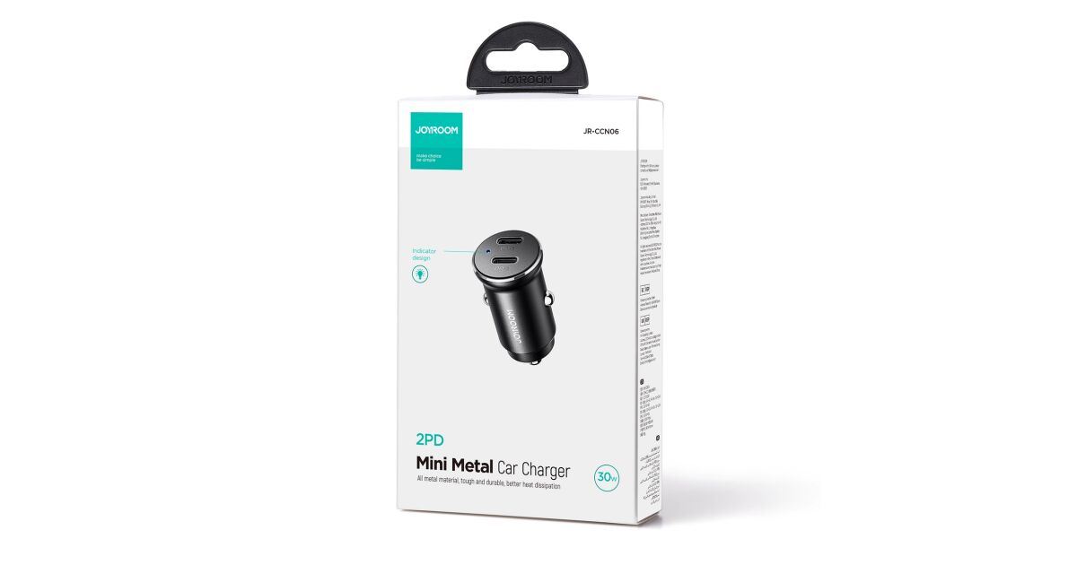 Mini-Autoladegerät Joyroom JR-CCN06, 30W, 2x USB-C, Metall, schwarz Beschreibung