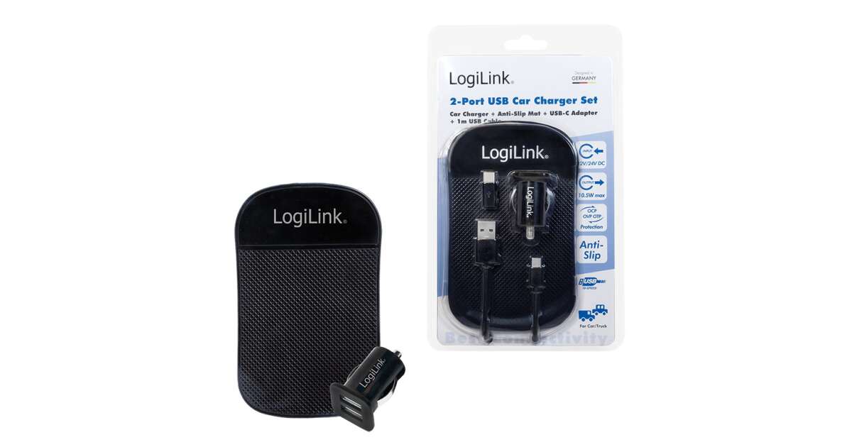 Logilink USB Kfz Netzteil, 2x USB-Port, 10.5W + Antirutschm.