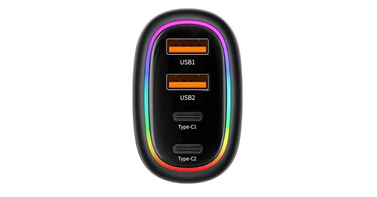 Dieses USAMS Auto-Ladegerät kann bis zu vier Geräte gleichzeitig aufladen, da es über zwei USB-A- und zwei USB-C-Anschlüsse verfügt. Die 120W Leistung sorgt für schnelles Aufladen, sodass du auch unterwegs immer bereit bist. Es verfügt außerdem über einen beeindruckenden, farbigen LED-Leuchtring, der für ein stilvolles Aussehen sorgt.