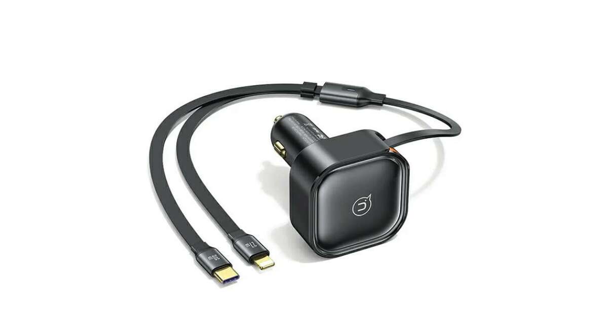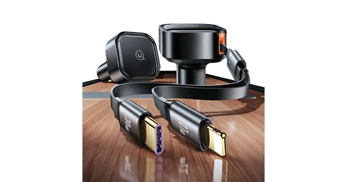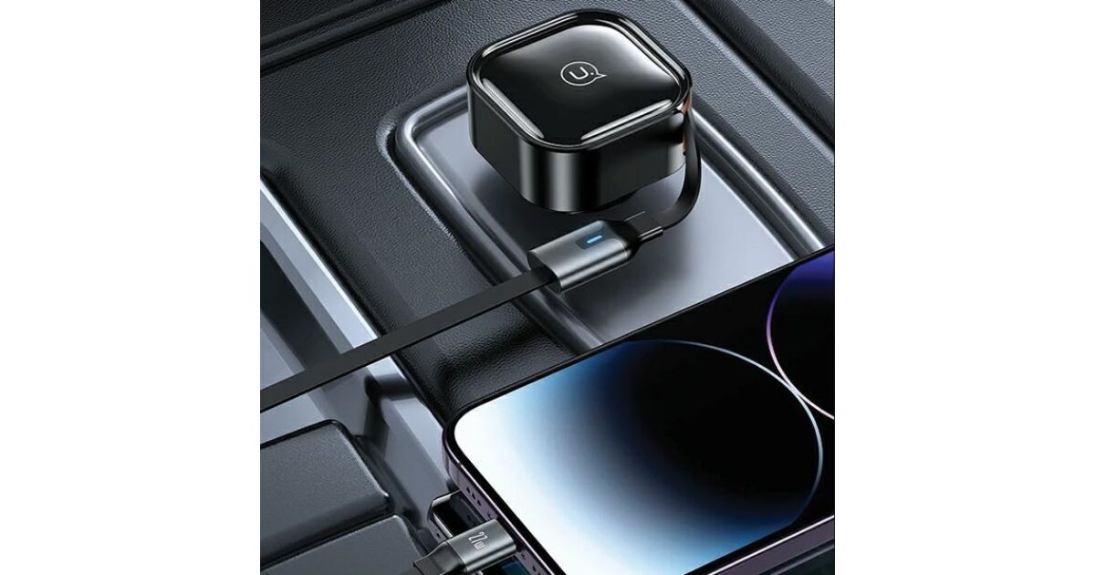 USAMS C41 1xUSB-C, 1xLightning Autoladegerät mit einziehbarem Kabel PD 30W Fast Charge schwarz Beschreibung