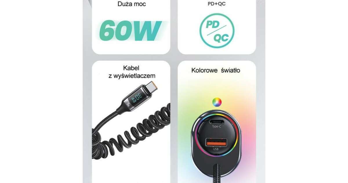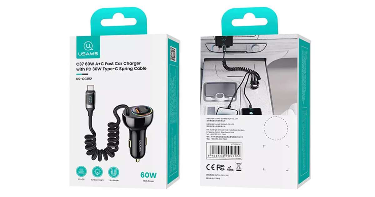 USAMS C37 Auto-Ladegerät: 60W Schnellladung mit USB- und USB-C-Anschlüssen ⚡
