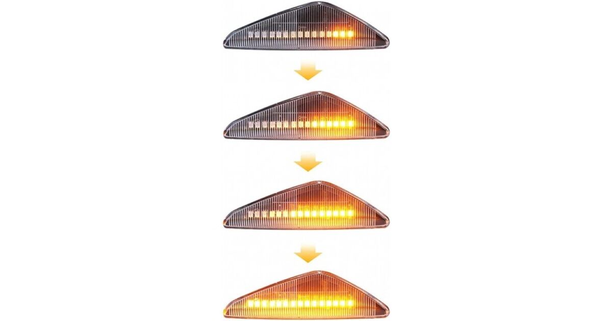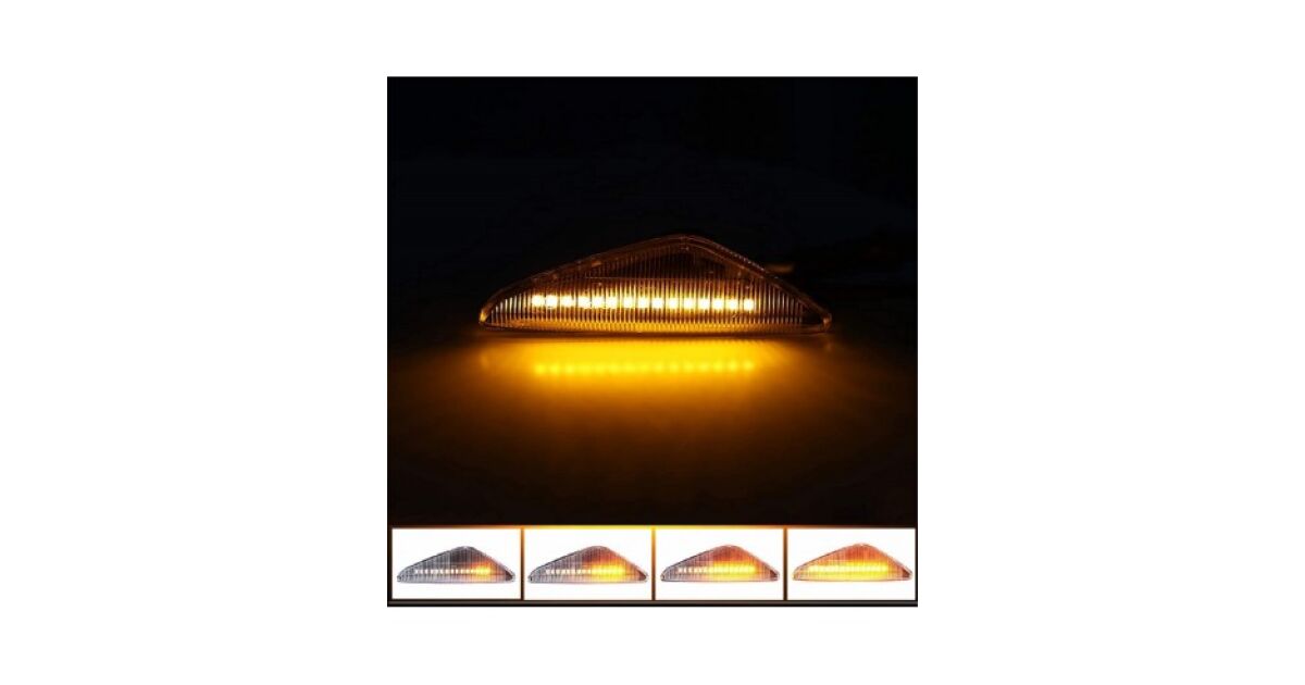 Frische das Aussehen deines BMW mit diesem 2er-Set dynamischer LED-Seitenblinker auf! Die sequenzielle Beleuchtung sorgt für einen modernen und eleganten Effekt und erhöht gleichzeitig die Sicherheit durch bessere Sichtbarkeit. Das klare Glasdesign sorgt für ein raffiniertes Aussehen.