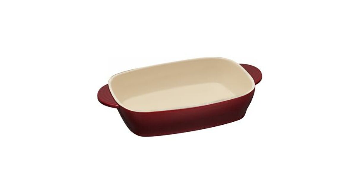 Diese rote, rechteckige Auflaufform ist die perfekte Wahl für Lasagne, Aufläufe, Kuchen und vieles mehr. Genieße die einfache Reinigung und die lange Lebensdauer!