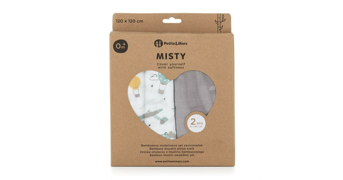 P&M Bambus Musselin 2er Set 120×120 cm - Misty Grey Planes Beschreibung