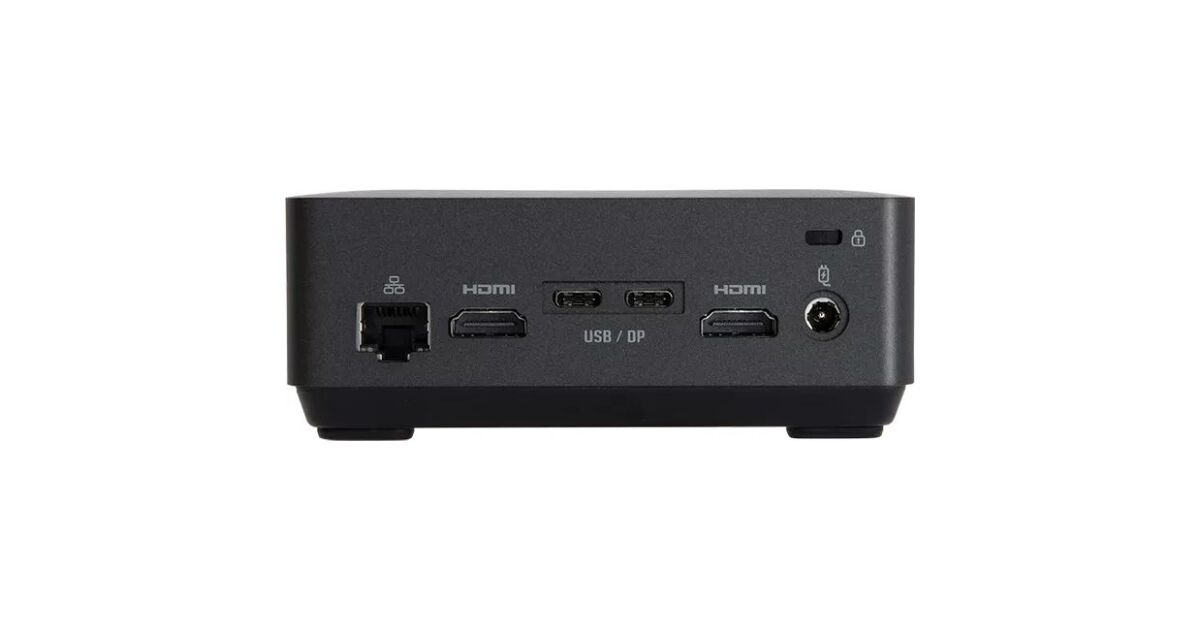 | 1 x Kopfhörer/Mikrofon, 2 x USB 3.2 Gen2 Type-A, 2 x USB 2.0 Type-A, 1 x Ein-/Ausschalter | 1 x 2.5 GbE RJ45, 2 x HDMI 2.1, 2 x USB 3.2 Gen2 Type-C (DP Alt Mode), 1 x Kensington Lock Slot, 1 x DC-In |