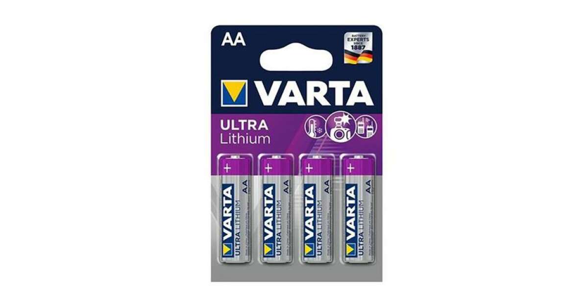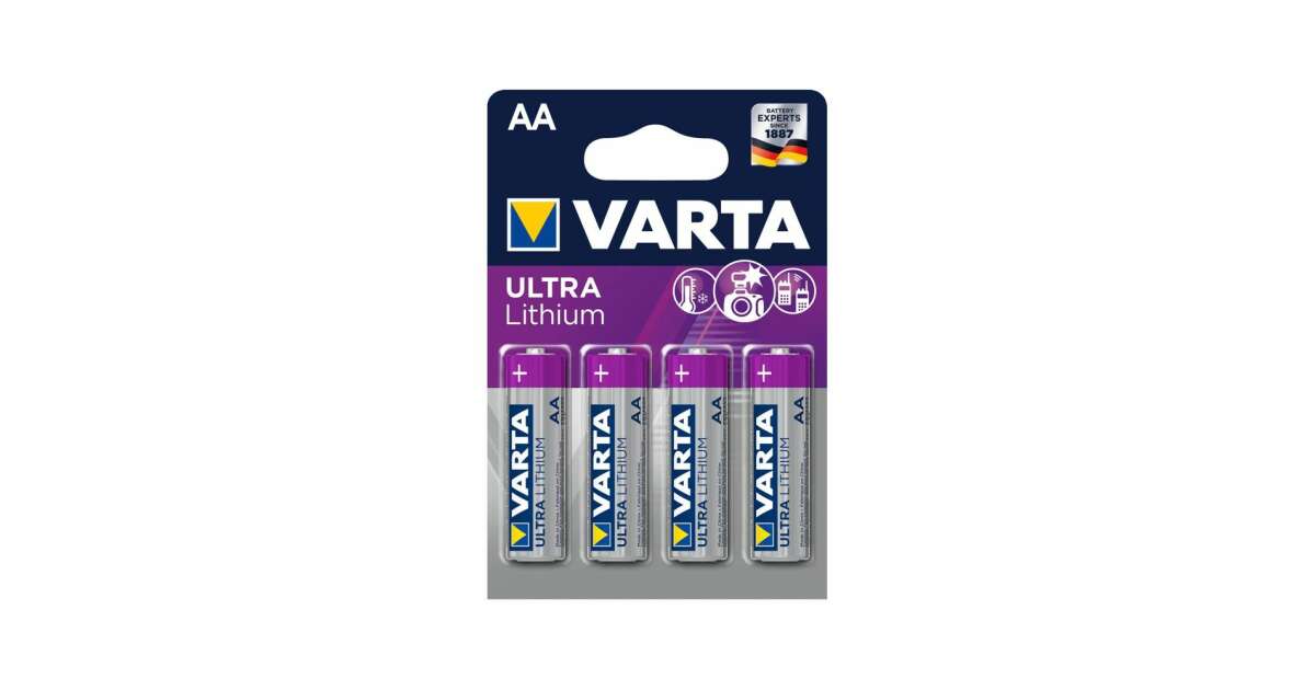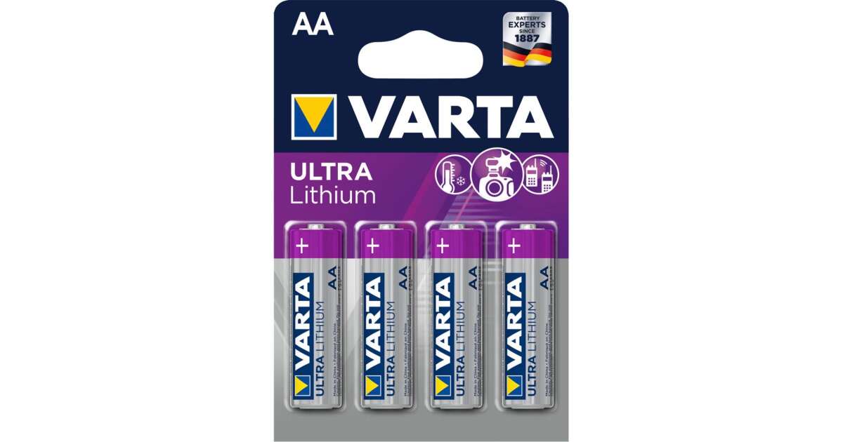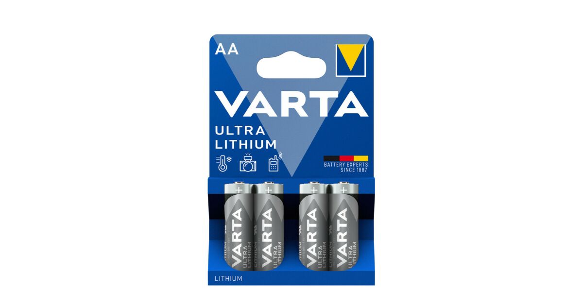 Die langlebigen VARTA Ultra Lithium AA Mignon Batterien im 4er-Pack funktionieren zuverlässig auch unter extremen Bedingungen. Die perfekte Wahl für energieintensive Geräte wie Digitalkameras, GPS-Geräte und Rauchmelder.