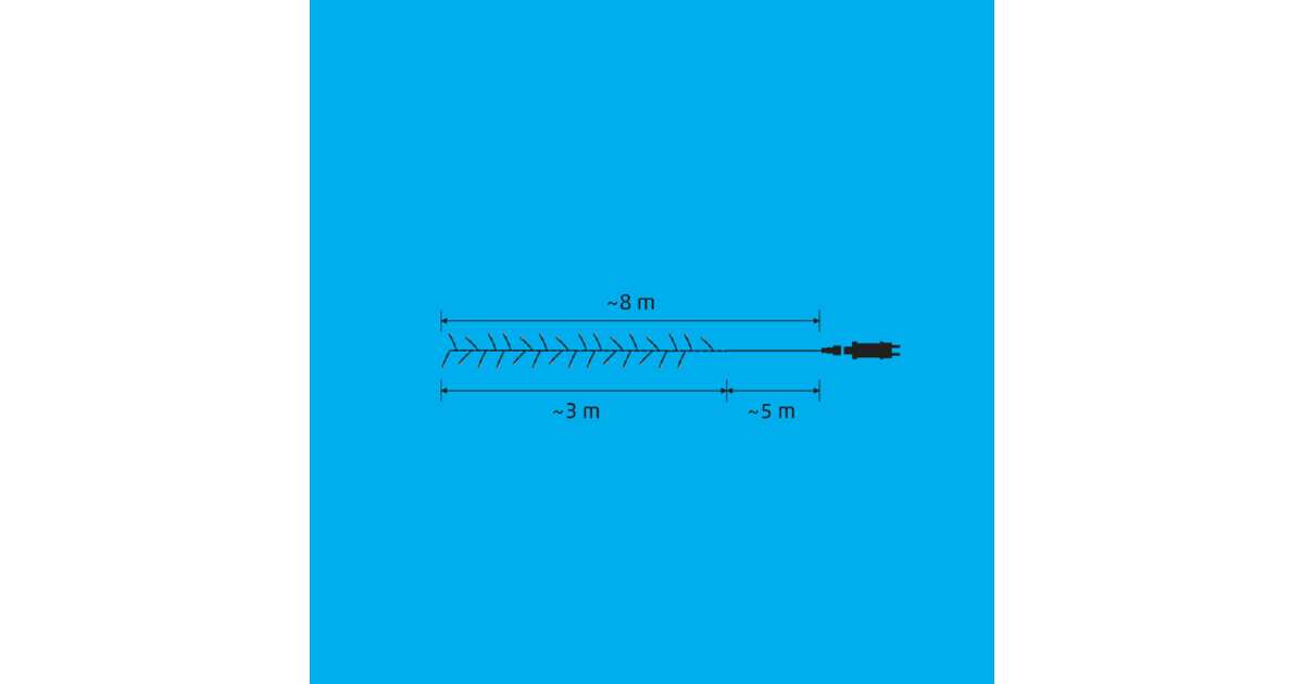 - 8 Meter lang (3 Meter Lichterkette + 5 Meter Kabel)