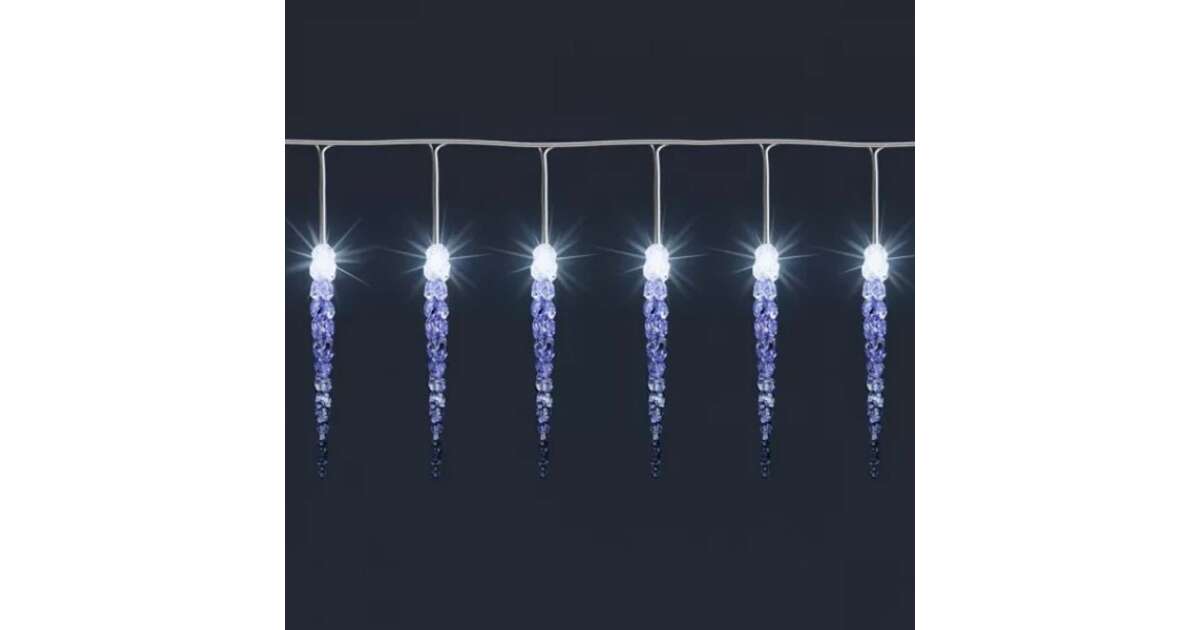 Die Eiszapfen der Lichterkette leuchten mit einem konstanten, stehenden Licht.