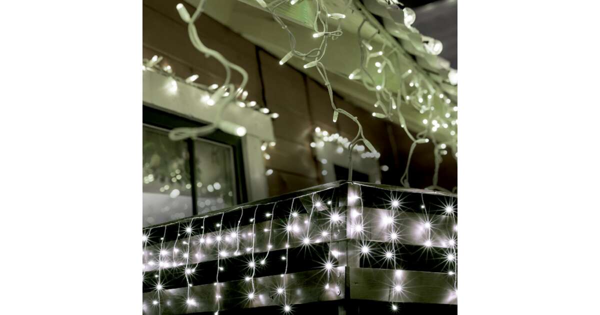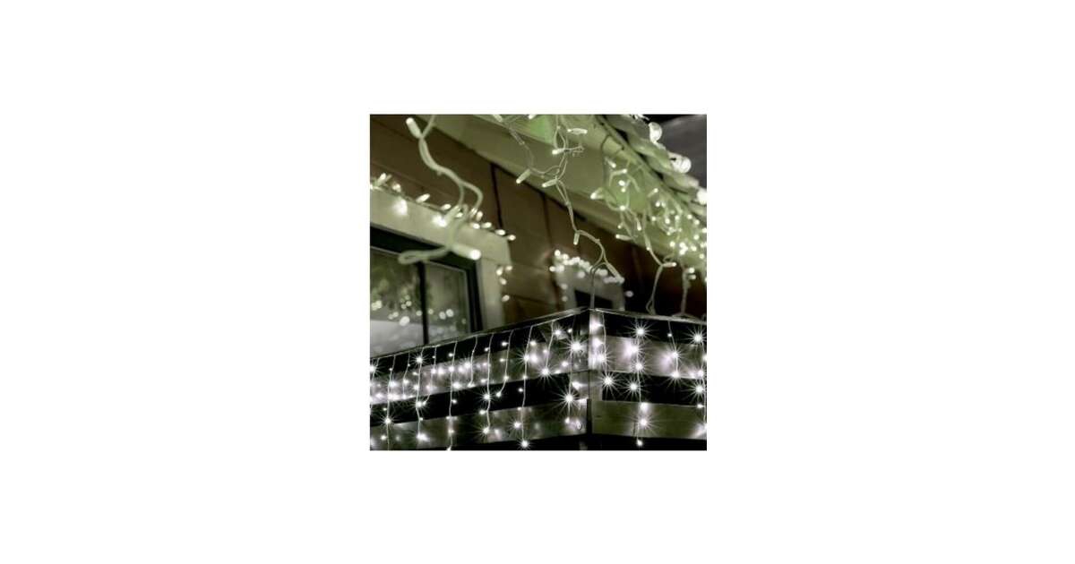 Startseite LED-Lichtervorhang KKF 158/WH, 5 m / 150 kaltweiße LEDs, 8 Lichtprogramme, weißes Kabel, Netzteil, Outdoor- und Indoor-Design