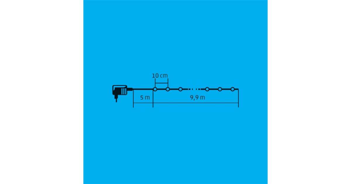 Home LED 100/A LED-Lichterkette, 9,9 m / 100 bernsteinfarbene LEDs, Dauerlicht, grünes Kabel, Netzteil, Außen- und Innendesign Beschreibung
