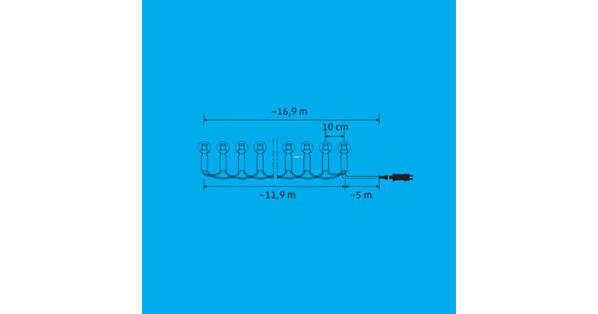- Länge: ~16,9 m (Vorhangbreite ~11,9 m, Kabellänge ~5 m)