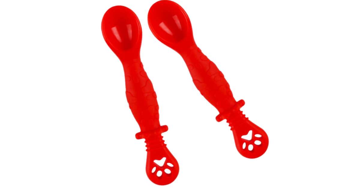 Babylöffel zum Füttern und Diversifizieren Baby 4-24 Monate, Silikon, rutschfeste Rillen, 2er-Set, Rot