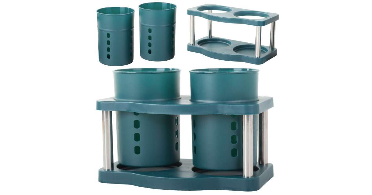 Dieser grüne Besteckhalter mit zwei Fächern ist die perfekte Lösung, um dein Besteck ordentlich aufzubewahren und zu trocknen. Dank des perforierten Designs kann das Wasser leicht abfließen, sodass dein Besteck schnell trocknet.