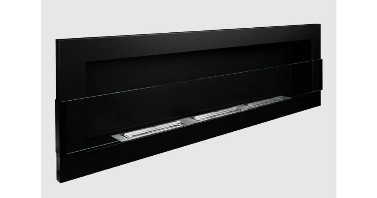 Bioethanol-Kamin, mit hitzebeständigem Glas, 1200 X 400 x 120 mm, mattes Strukturschwarz, Edelstahlbrenner, Trichter, dekorative weiße Kieselsteine + Aromatherapiegerät inklusive! Beschreibung
